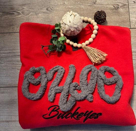 Stay cozy while showing your Buckeye pride with this bold Ohio Buckeyes sweatshirt. Featuring soft, chenille-style “OHIO” lettering paired with sleek embroidered “Buckeyes,” this sweatshirt combines comfort with school spirit. Perfect for game days, tailgates, or everyday wear, it’s a must-have for any true fan.